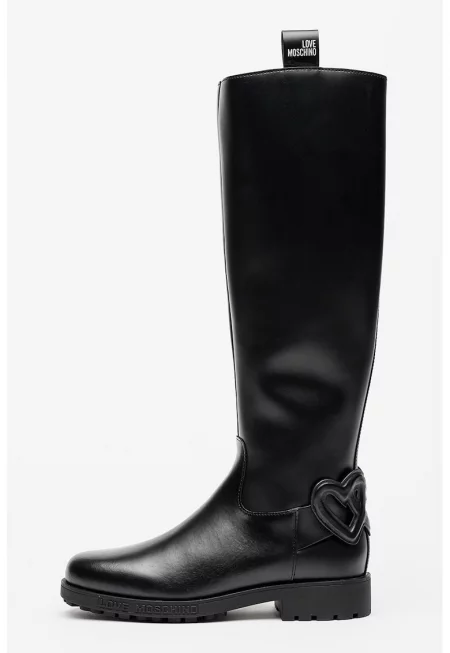 Кожени дълги ботуши Bellevaux с масивен ток - Черен