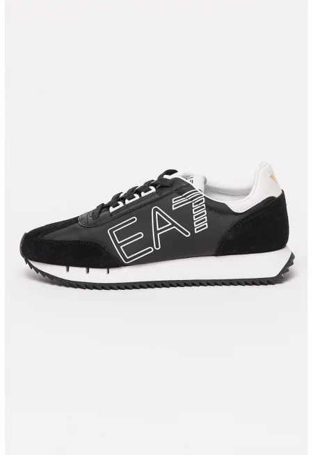 Спортни обувки с велур с нисък профил - Бял/Черен