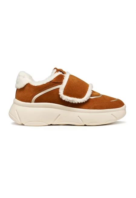 Скосени маратонки с велур - Канелено кафяво/Крем