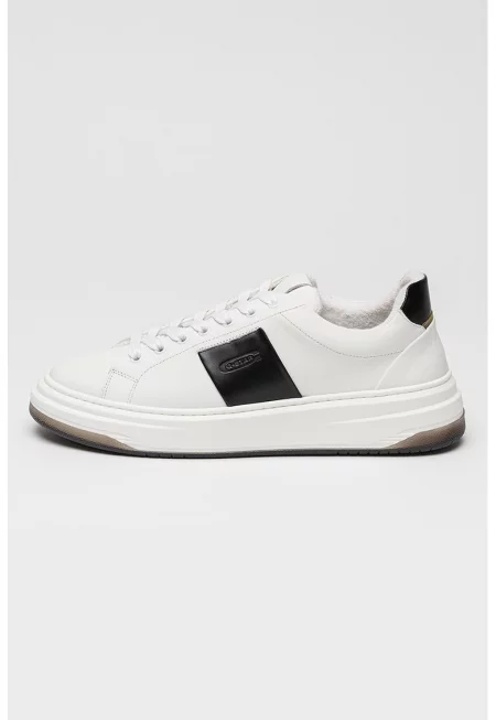 Скосени кожени маратонки - Бял/Черен