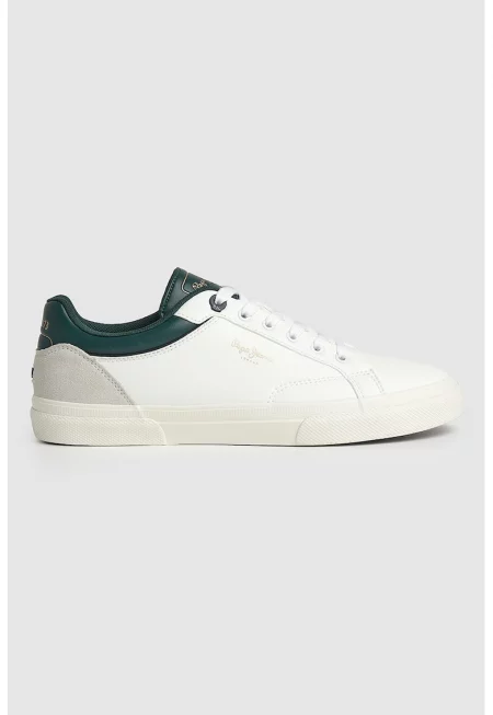 Спортни обувки с нисък профил и лого - Бял/Зелен