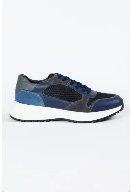 Кожени спортни обувки с мрежа - Черен/Сиво-кафяв