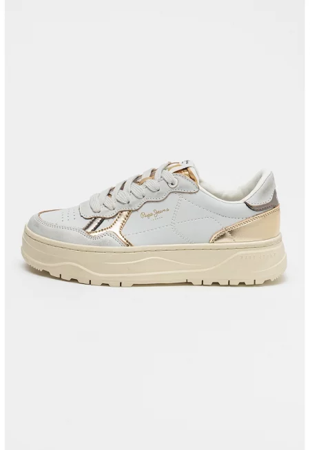 Спортни обувки от еко кожа с лого - Бял