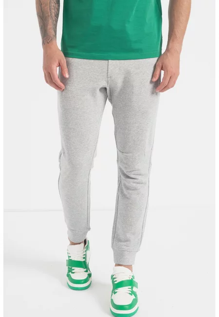 Скосен спортен панталон с джобове с цип - Сив меланж