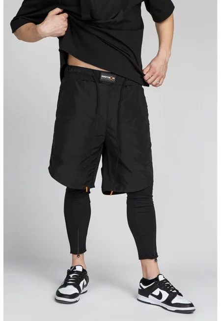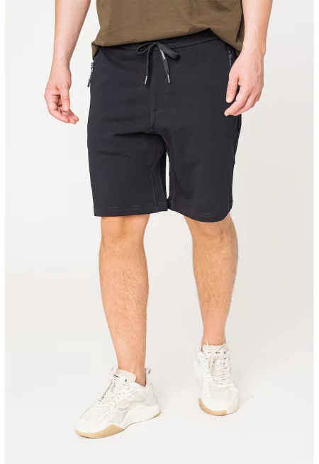 Скосен спортен панталон с джобове с цип - Тъмносин