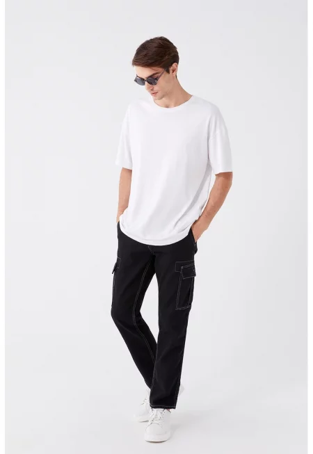 Панталон Windrunner с цепки с цип на глезените - Бял/Черен