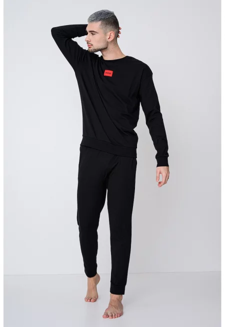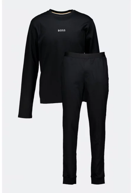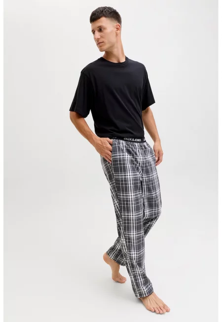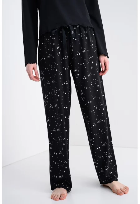 Памучна дълга пижама - Черен - Кралско Синьо -