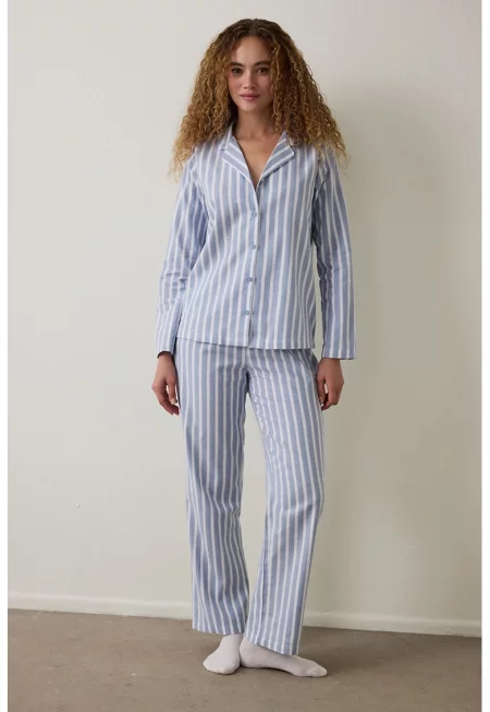 Памучна пижама с шарка - Тъмносин - Мръснобял -