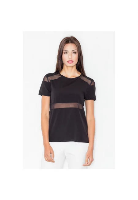 Дамска блуза M468 - черна - къс ръкав - полиестер - еластан -