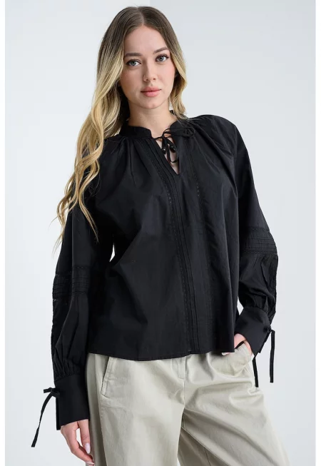 Ефирна блуза Lea с яка панделка от лентички