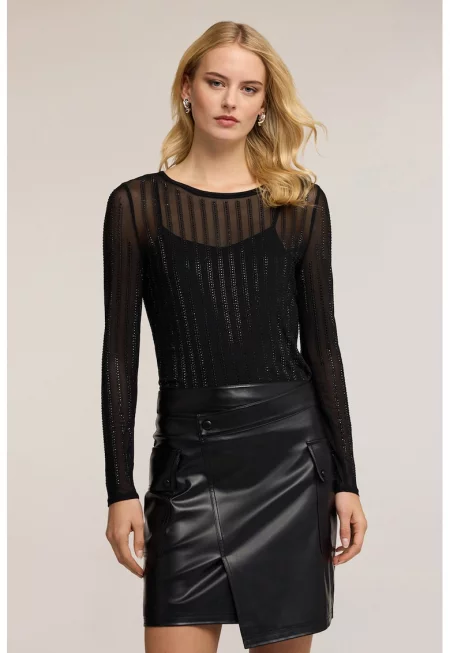 Прозрачна блуза с ниска яка