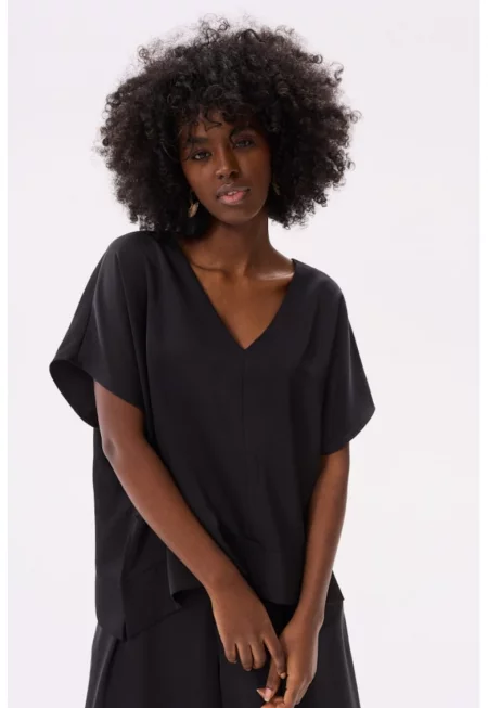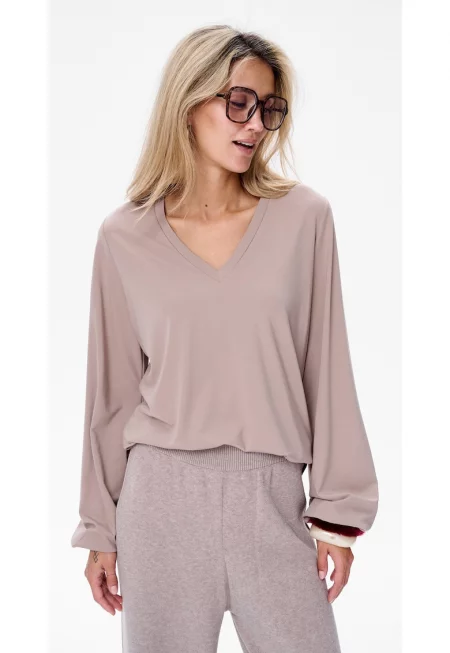 Лежерна блуза с V-образно деколте