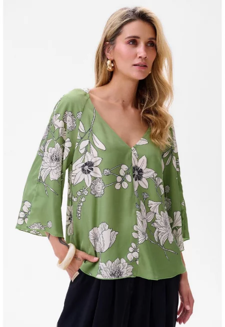 Блуза с V-образно деколте с флорален принт