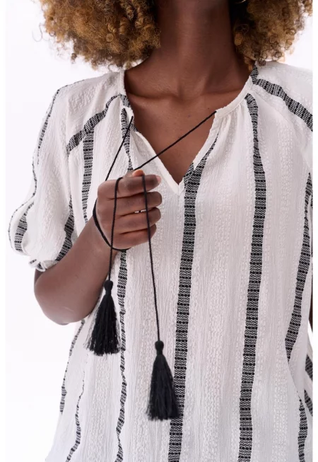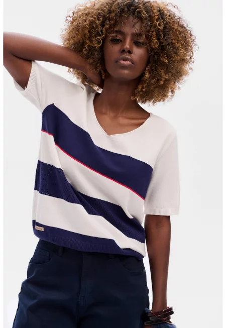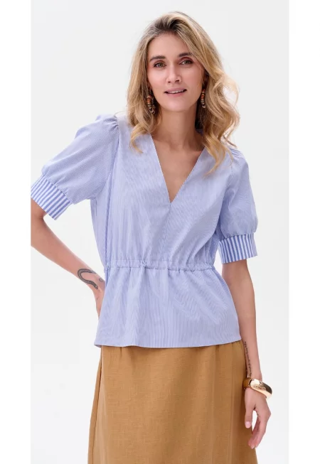 Блуза с V-образно деколте и райета