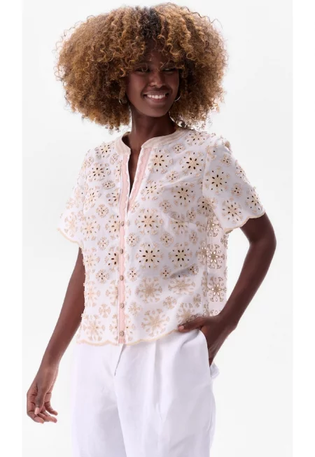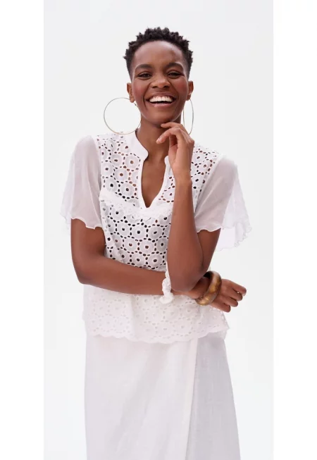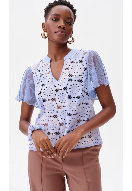 Блуза с бродерия и прозрачни ръкави Tefal