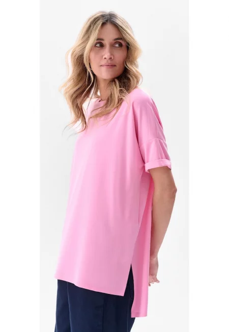 Едноцветна свободна блуза с деколте