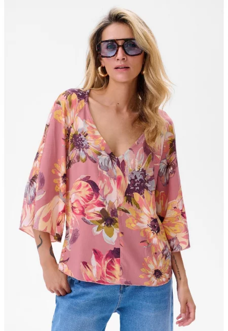Блуза с V-образно деколте и флорален принт