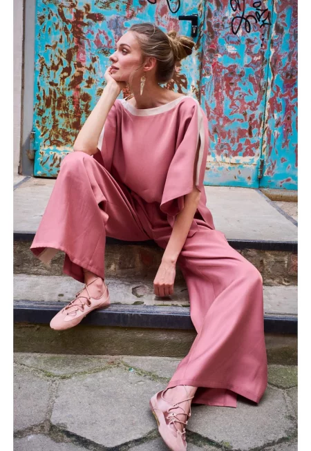 Широка блуза с кръгло деколте