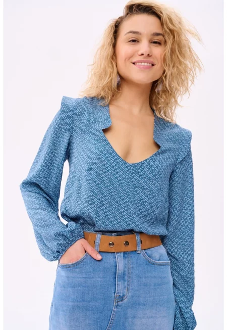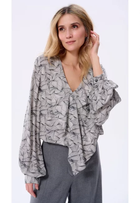 Блуза с V-образно деколте и волани Ален