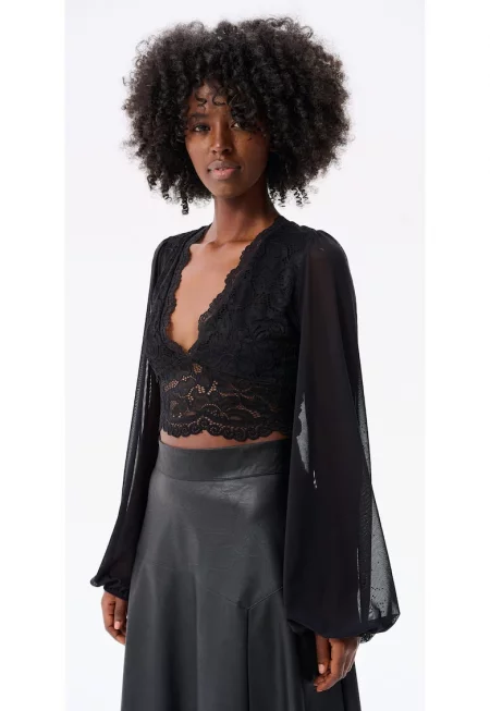 Къса блуза с дантела и V-образно деколте Aquafina