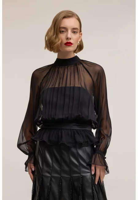 синя сянка - Лека блуза с лилави ръкави Nilya
