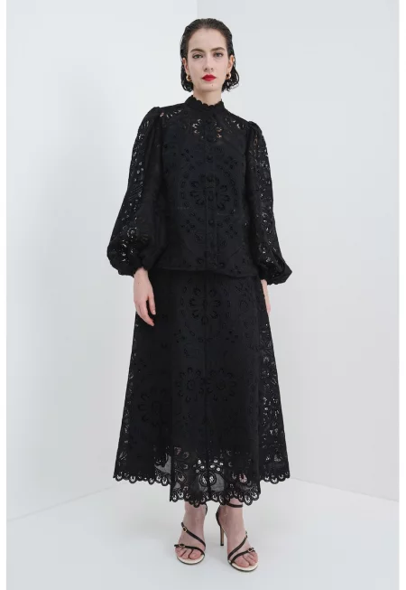 Блуза с бродерии и ниска яка
