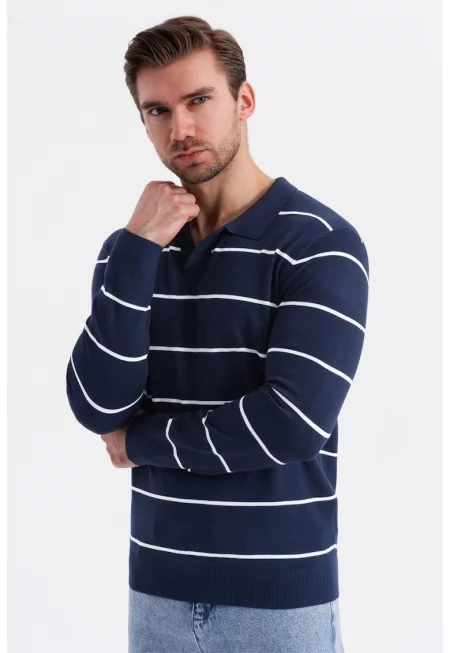 Мъжка блуза - 304143908 - Памук - Син