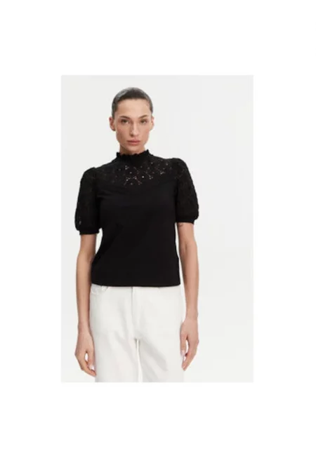 Дамска блуза - 304698125 - Памук/Полиестер - Черна