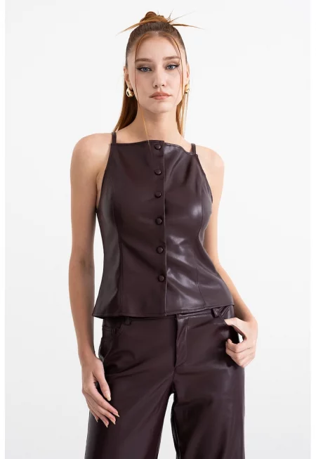Блуза с декоративни копчета - без ръкави
