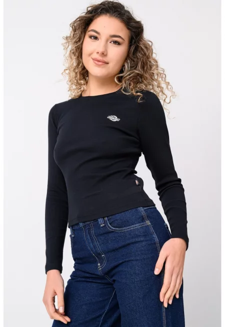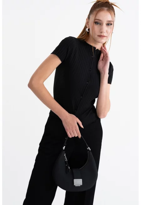 Рипсена слим блуза с къси ръкави - Черен -