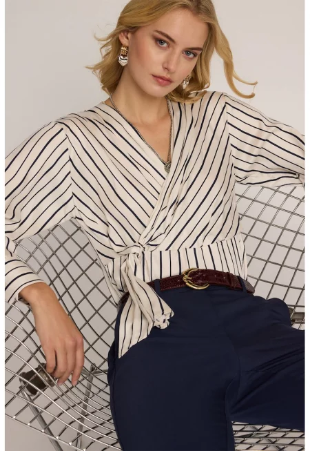 Раирана блуза с панделка на яката