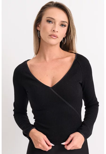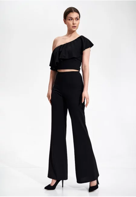 Дамски топ Полиестер/Еластан - Волан - Черен -
