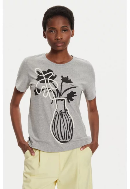 Дамска тениска - 304476877 - Памук - XS INTL - Сив