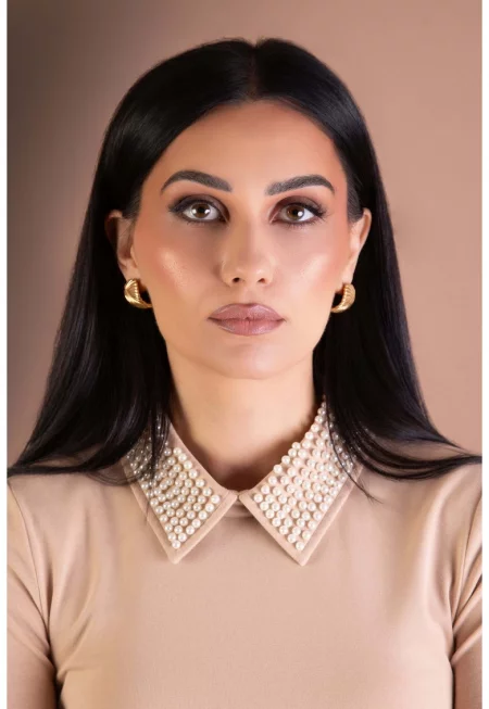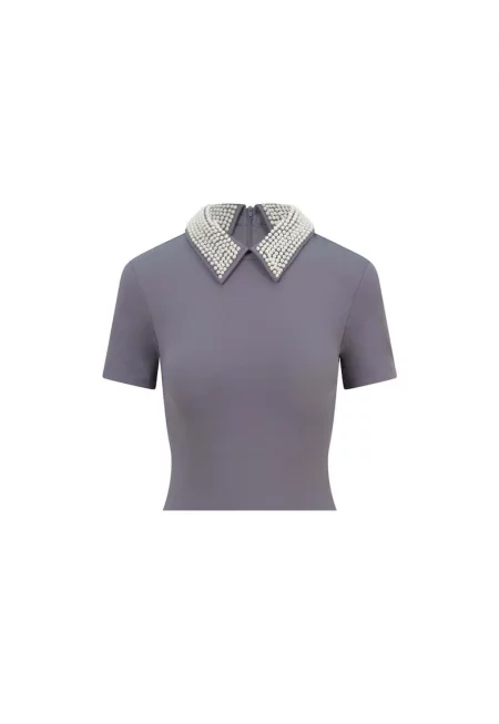 Тениска със синтетични перли на яката