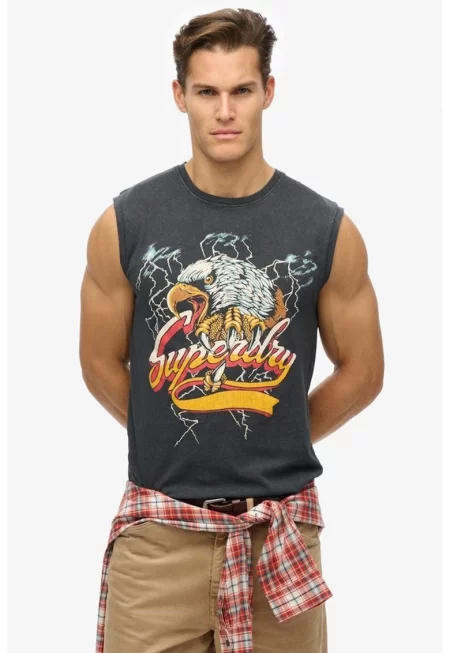 SUPERDRY - Памучен топ с фигурален принт и лого