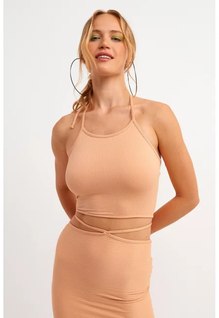 Къс топ с връзки - Праскова -