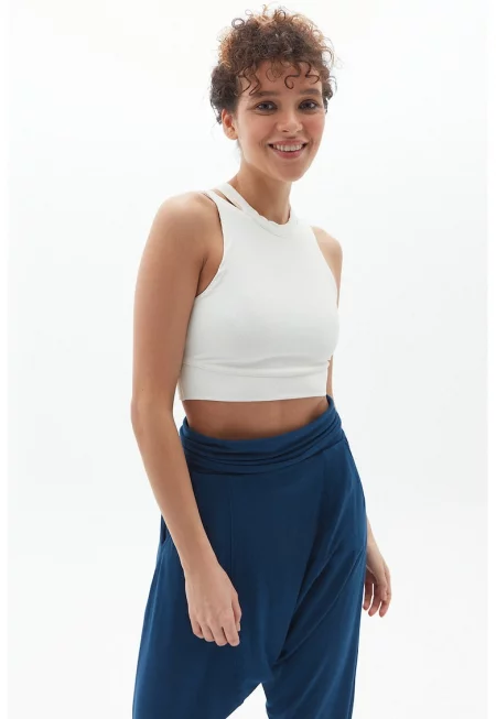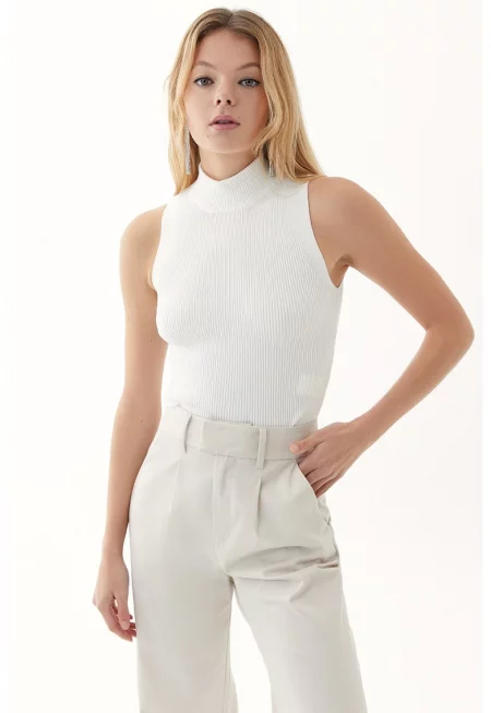 Рипсен слим топ с отвор - Бял -