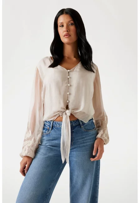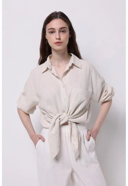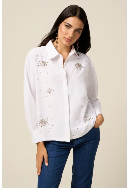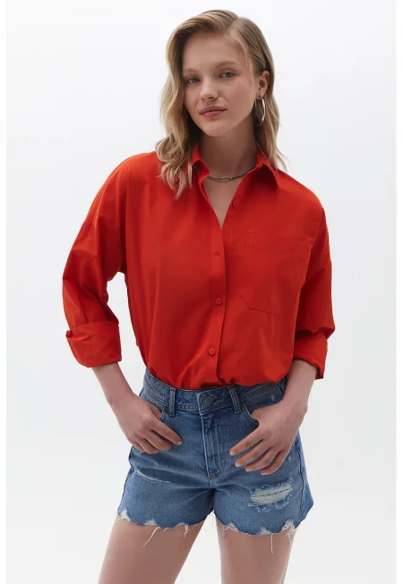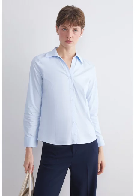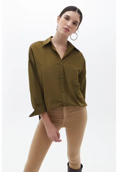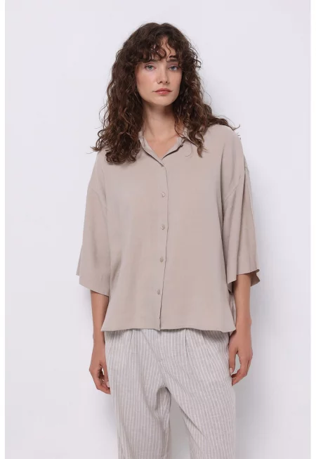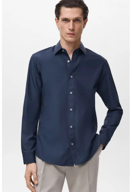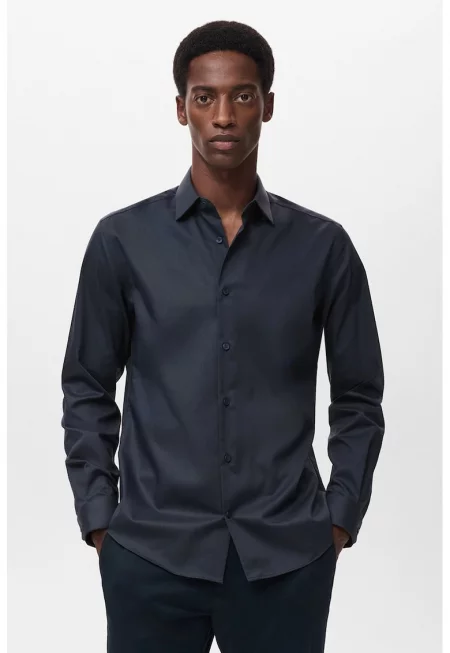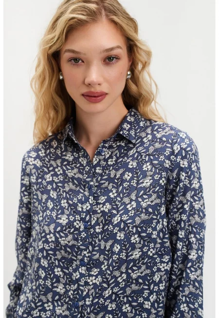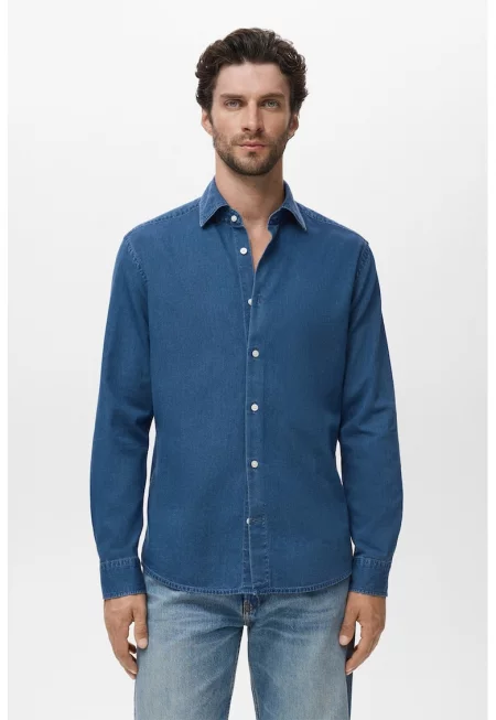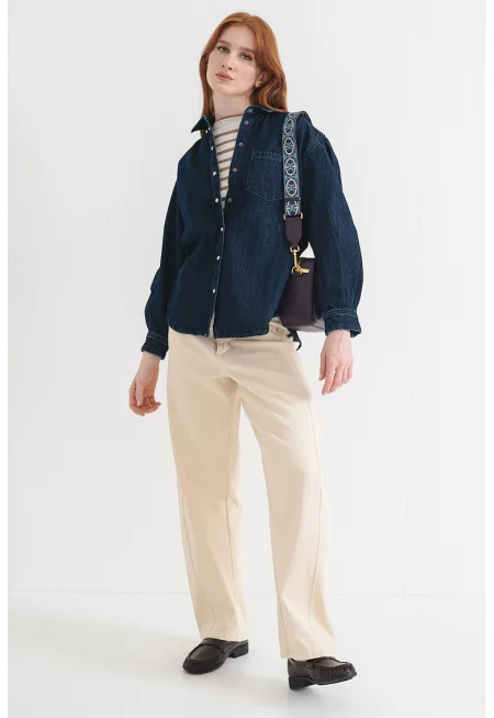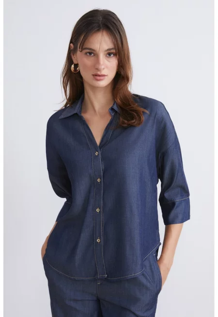 Риза от деним с 3/4 ръкави - Тъмносин -