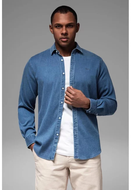 Дънкова риза Chris 14103484 Синя - стандартна кройка - памук