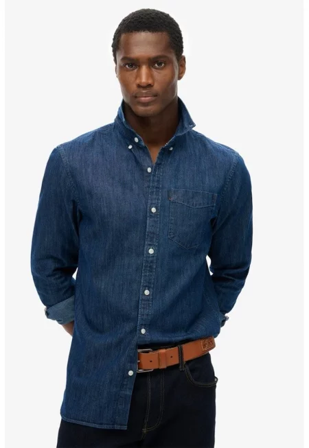 SUPERDRY - Риза Vintage от шамбре с джоб на гърдите