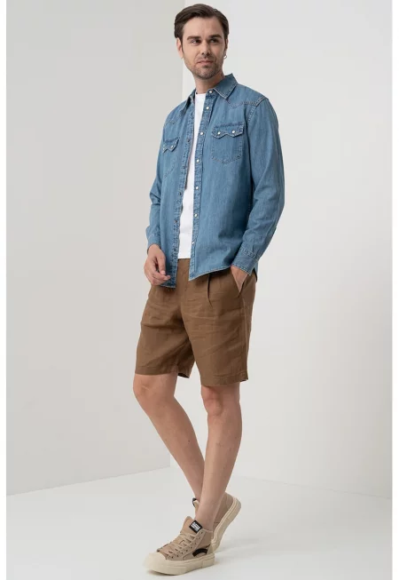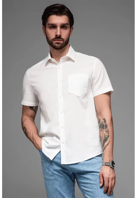 Риза от памук и лен с къси ръкави
