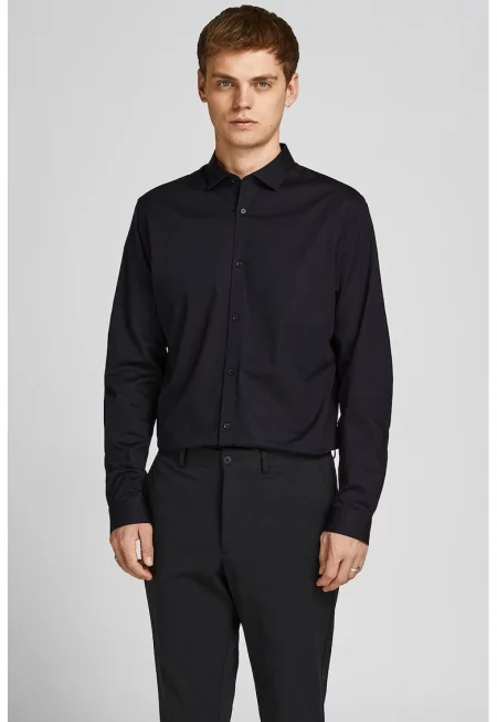 Мъжка риза Jack Jones - 12278724 - памук/акрил - черна