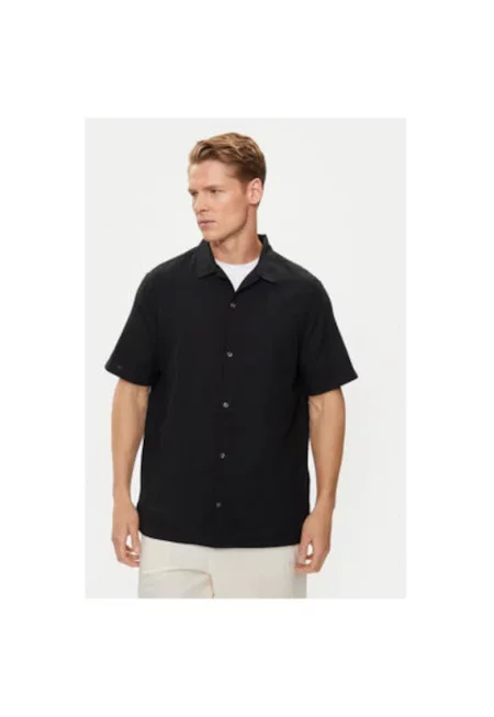 Мъжка риза - 304382550 - Лен/Памук - Черна