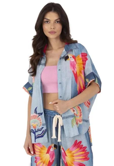 Риза от деним с джобове на гърдите