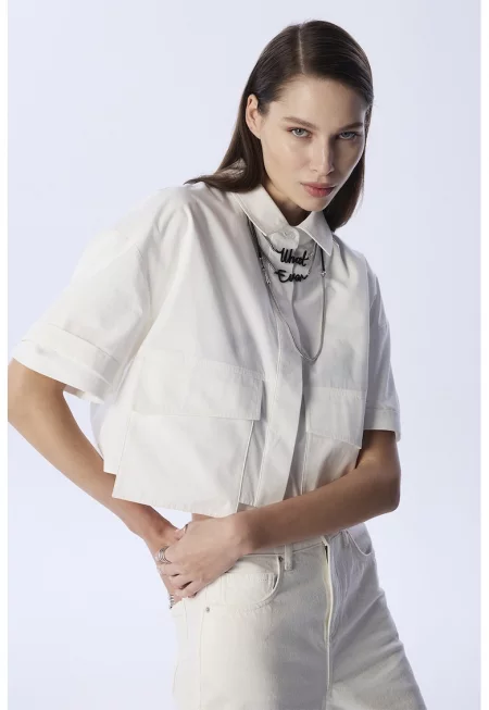 Риза Palm Angels Curved Logo Classic Shirt Ss White/ Black S