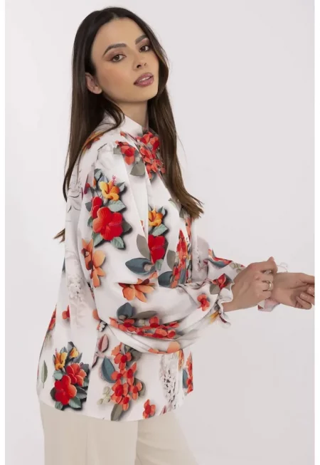 Риза с полупрозрачни ръкави и флорални мотиви