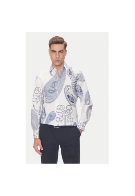 Мъжка риза B3 56017.3719 - Памук - Бяло/Синьо