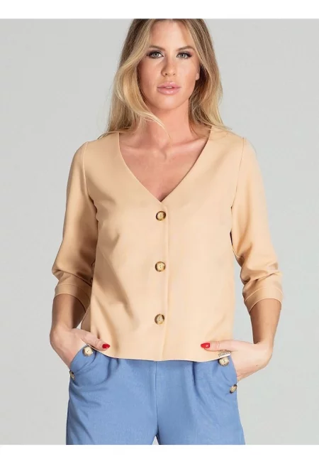 Дамска риза бежова - 3/4 ръкав - изрезка елха - полиестер