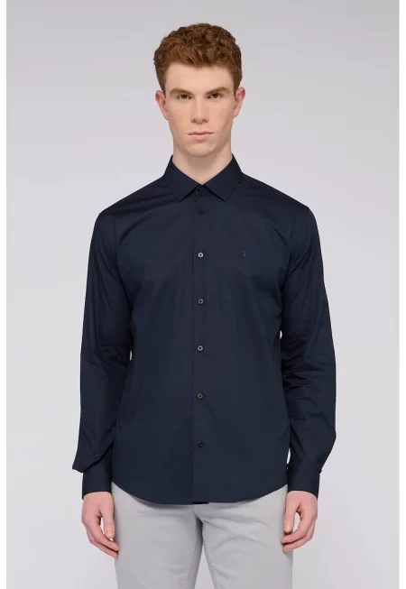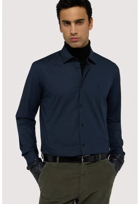 Елегантна риза M254 без яка - уникален модел - тъмносиньо - полиестер