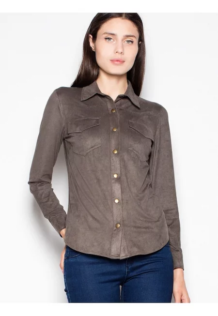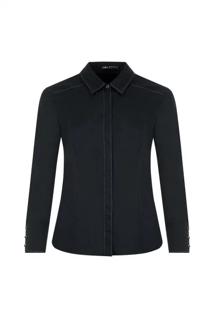 Елегантна черна дамска риза M876 - памук/найлон - дълъг ръкав - с копчета -